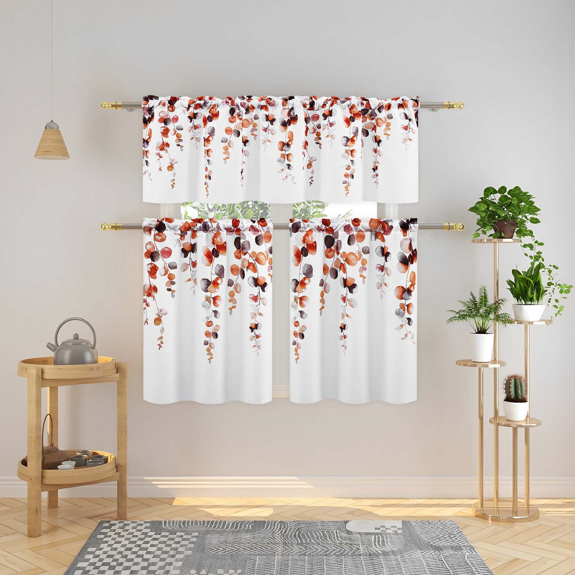 1、LEAVES PATTERN DESIGN: Valance are printed with watercolor leaf patterns,providing privacy,add the atmosphere of elegant .