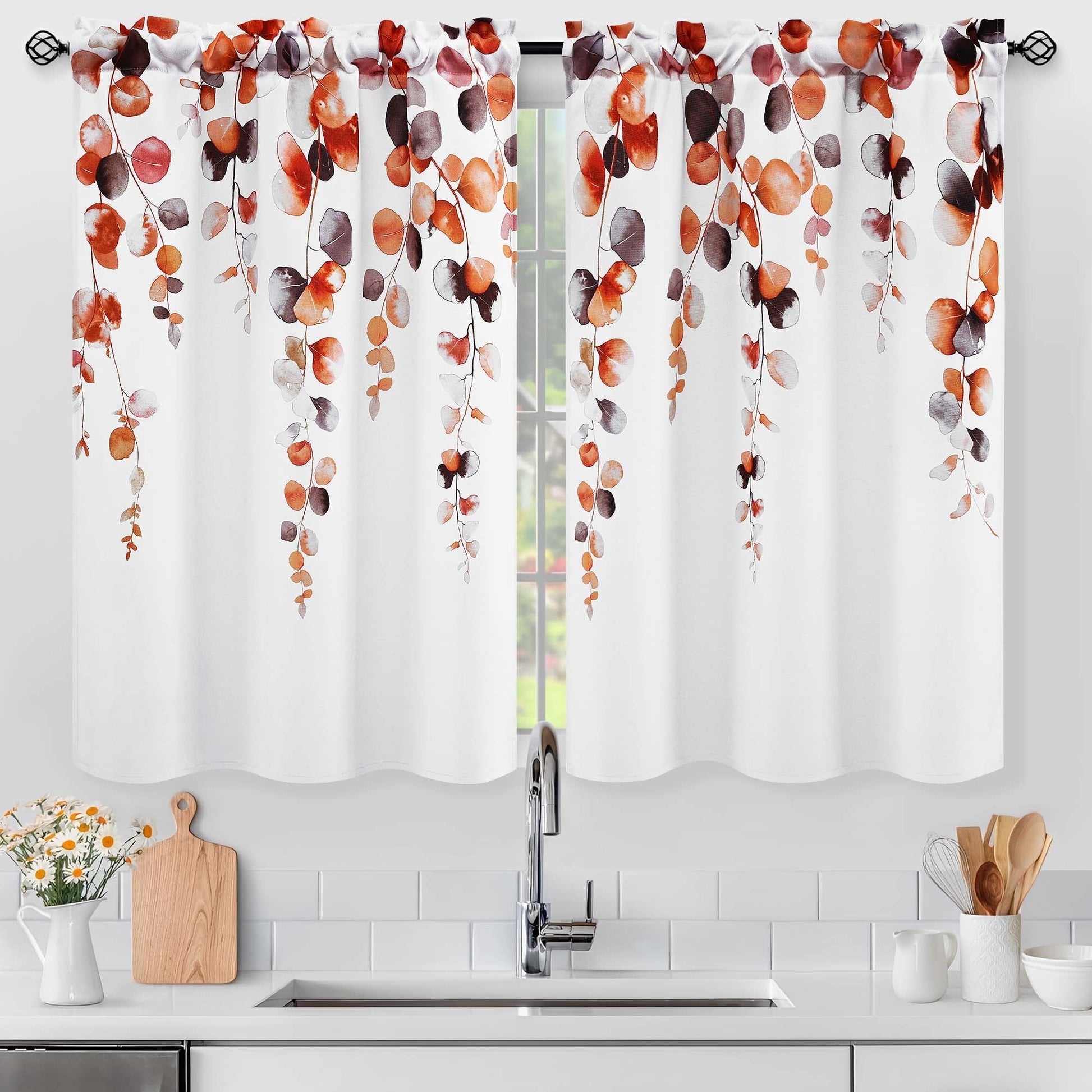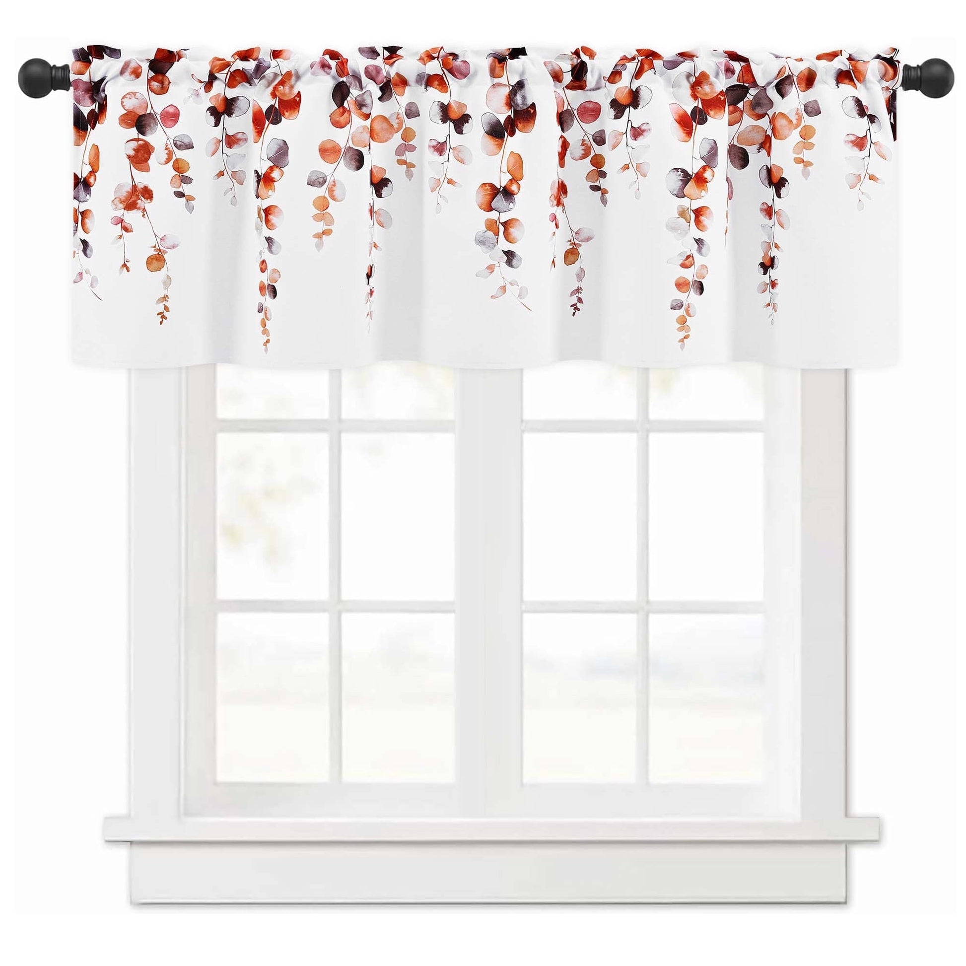 Alishomtll Fall Autumn Valance Curtains for Living Room Bedroom Kitchen Windows Grey Orange Watercolor Leaves Print ,52 x 18 inch,Rod Pocket