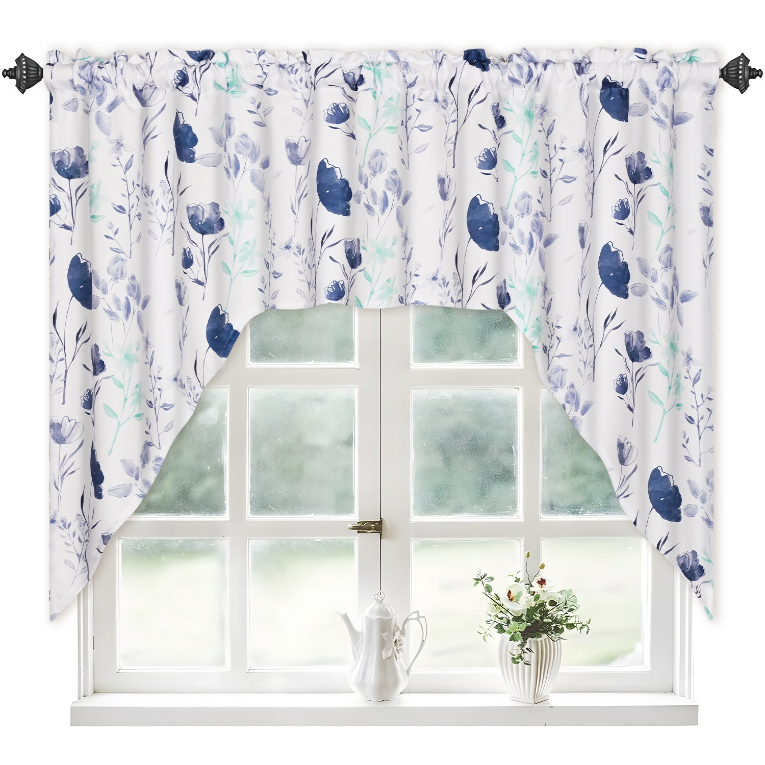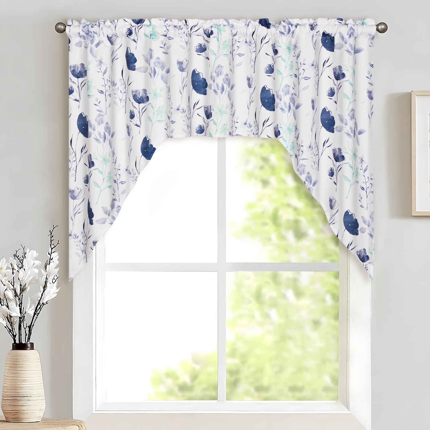 5、EASY CARE: Valances swags windows curtains are machine washable separately in cold water. Floral kitchen window curtains.
