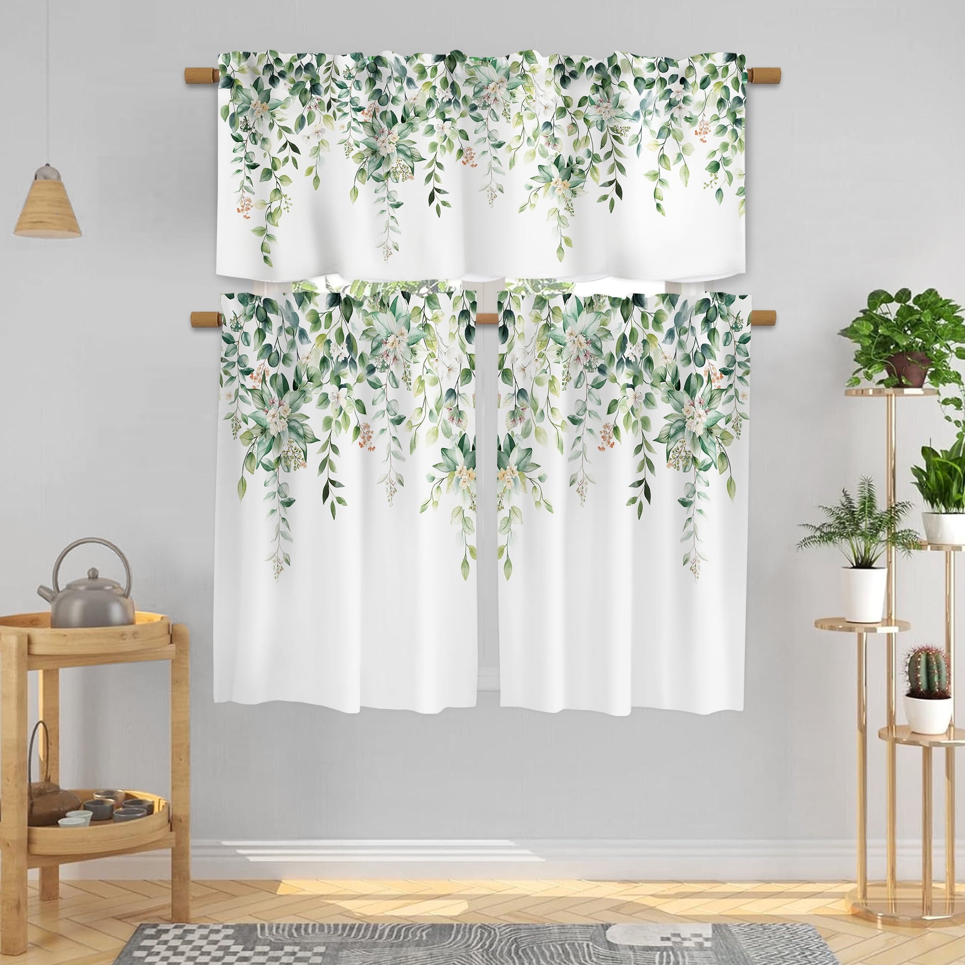 1、FLORAL PATTERN DESIGN: Valance are printed with eucalyptus leaf patterns,providing privacy,add the atmosphere of elegant .