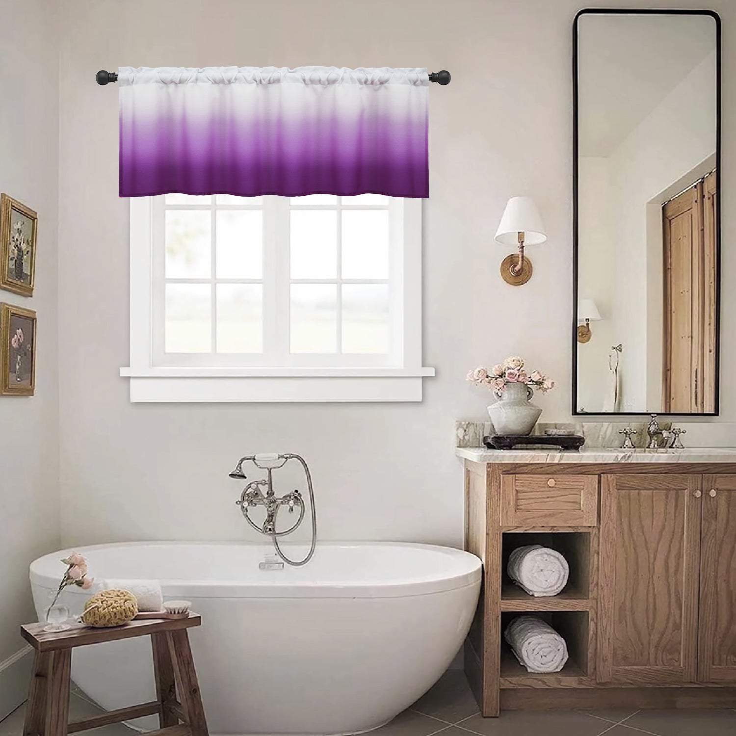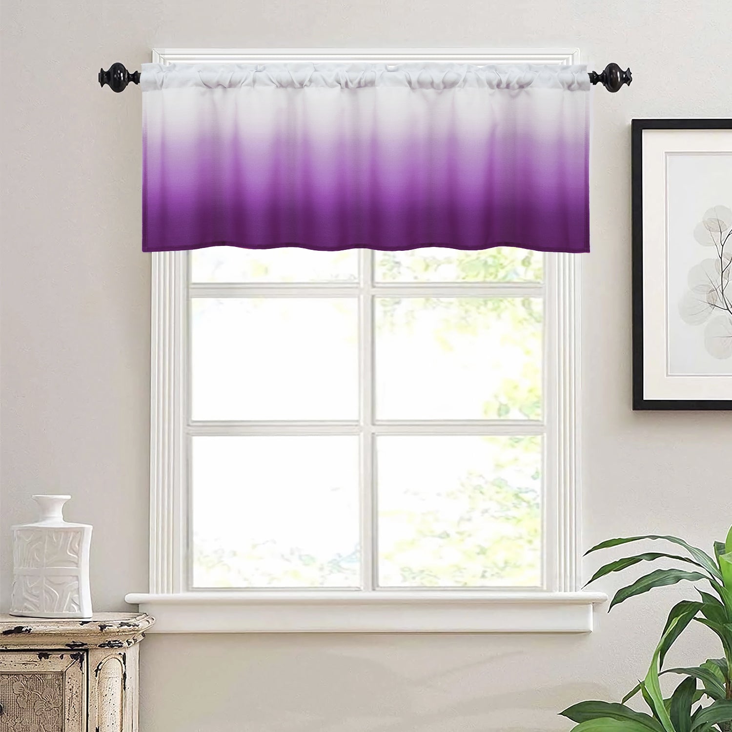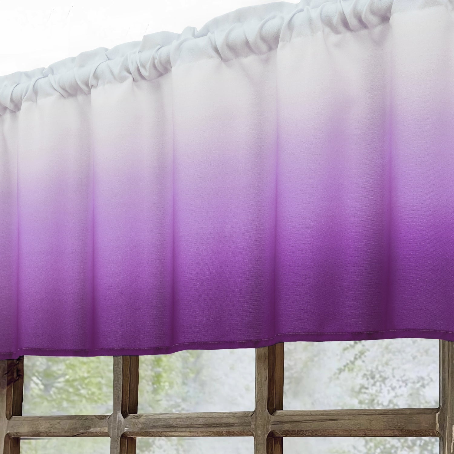 1、OMBRE DESIGN: Valance are printed with purple ombre gradient patterns,providing privacy,add the atmosphere of elegant .