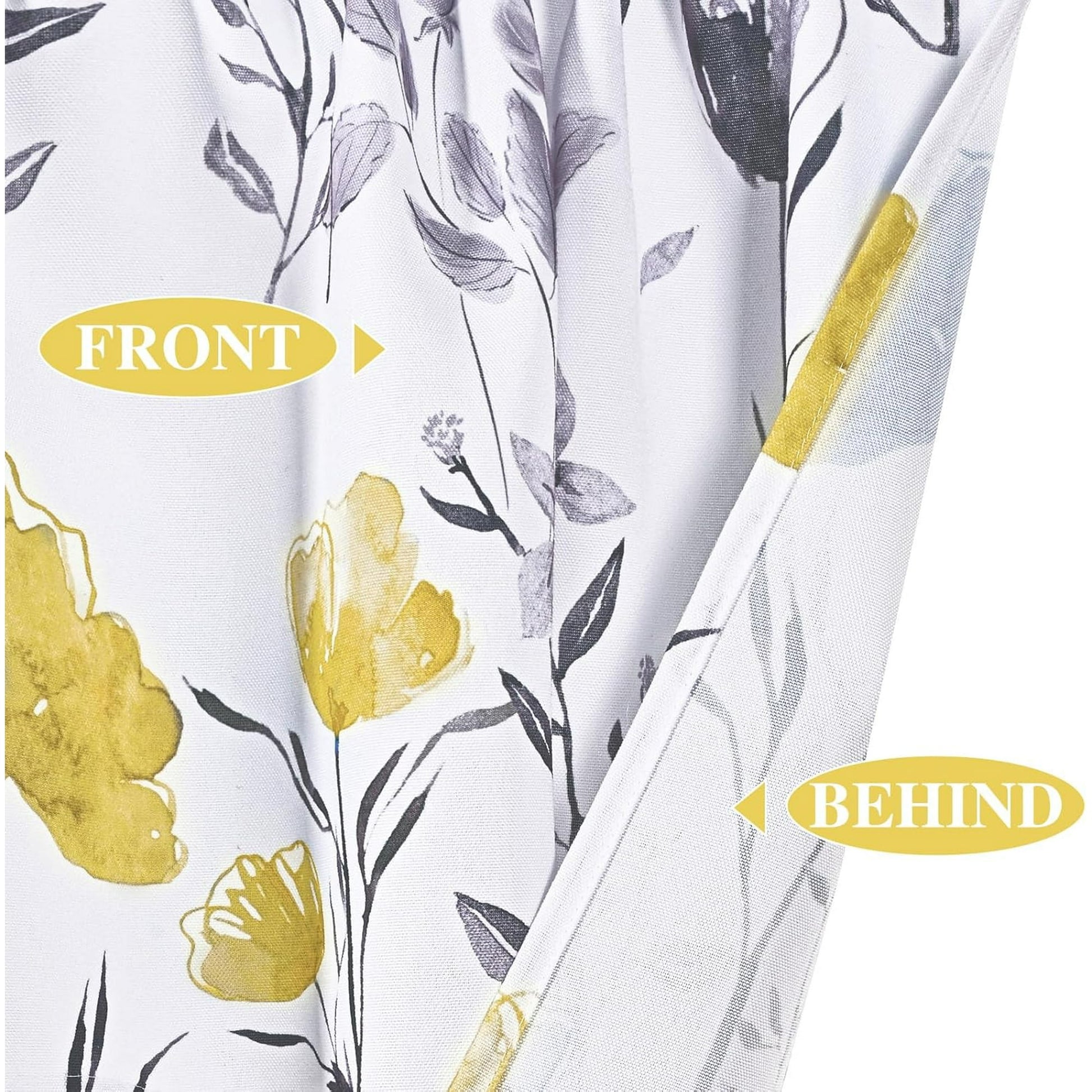 4、SIZE SPECIFICATIONS: Yellow floral valances curtains per package - 52”W x 18” L/panel. 2'' high rod pocket can accommodate a 0.8'' diameter window rod, which can be easily hung on standard or decorative curtain rods.