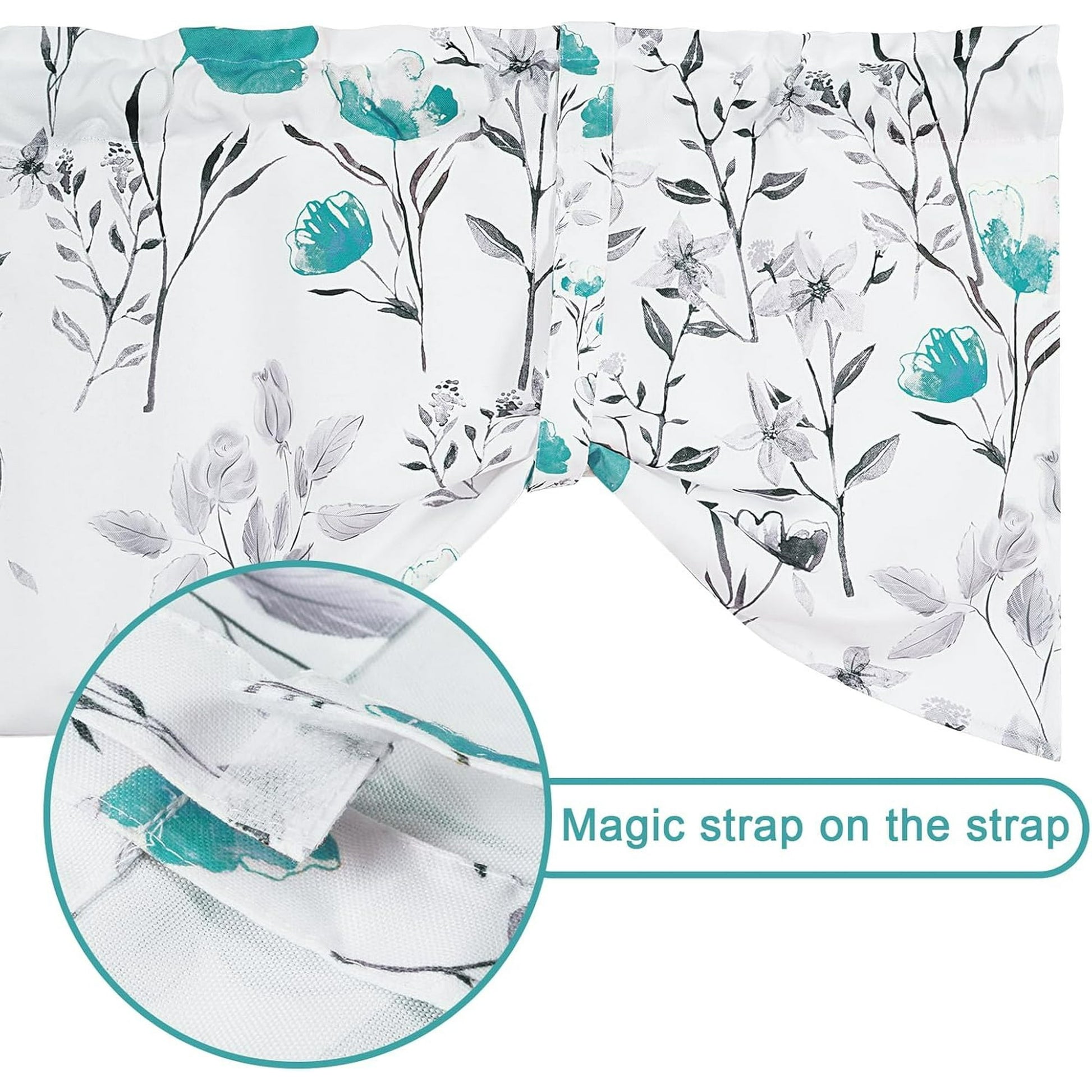 1、FLORAL PATTERN: Teal floral printed balloon tie-up valances curtains , kitchen curtains are printed with floral patterns.