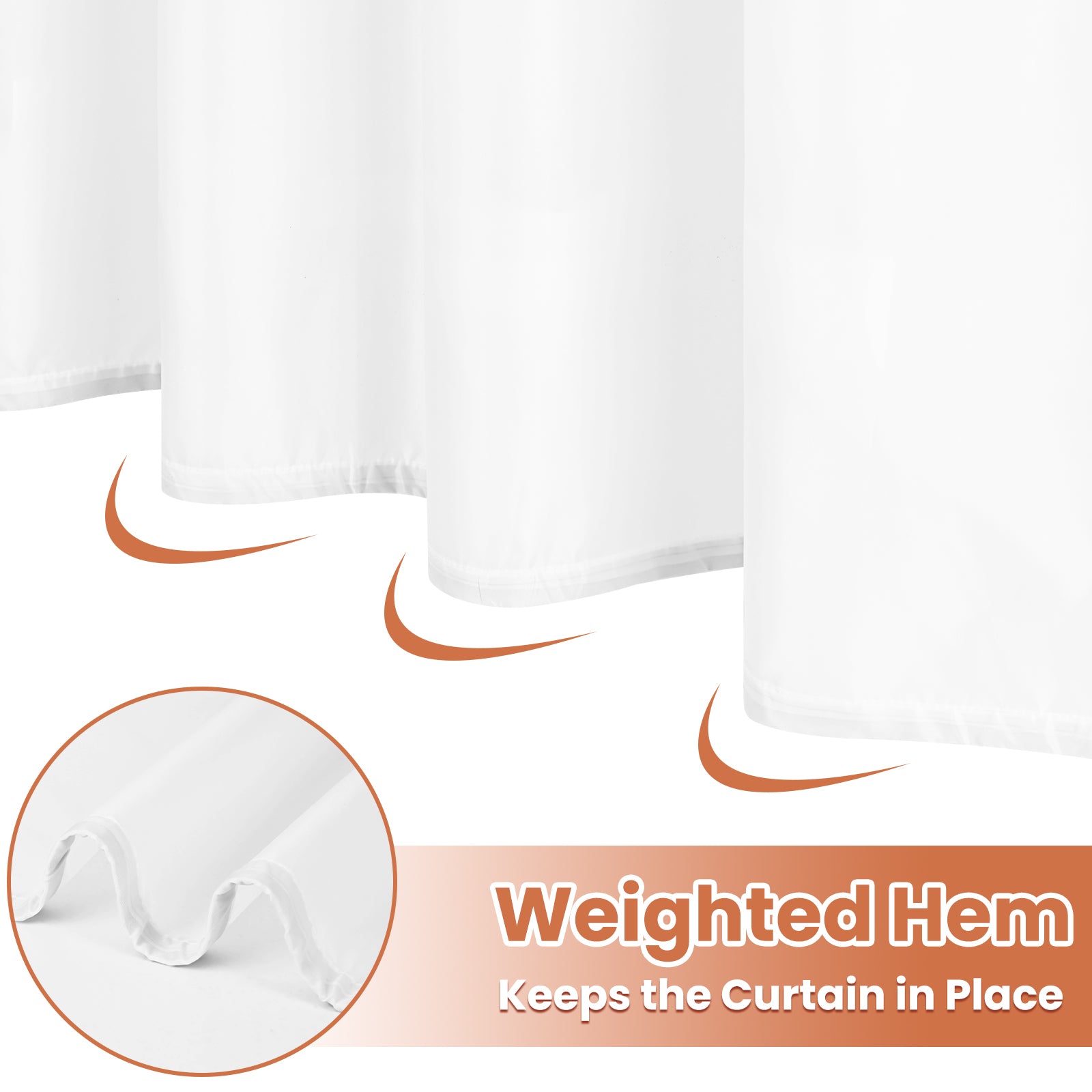 12 free shower curtain hooks, easy to hang.