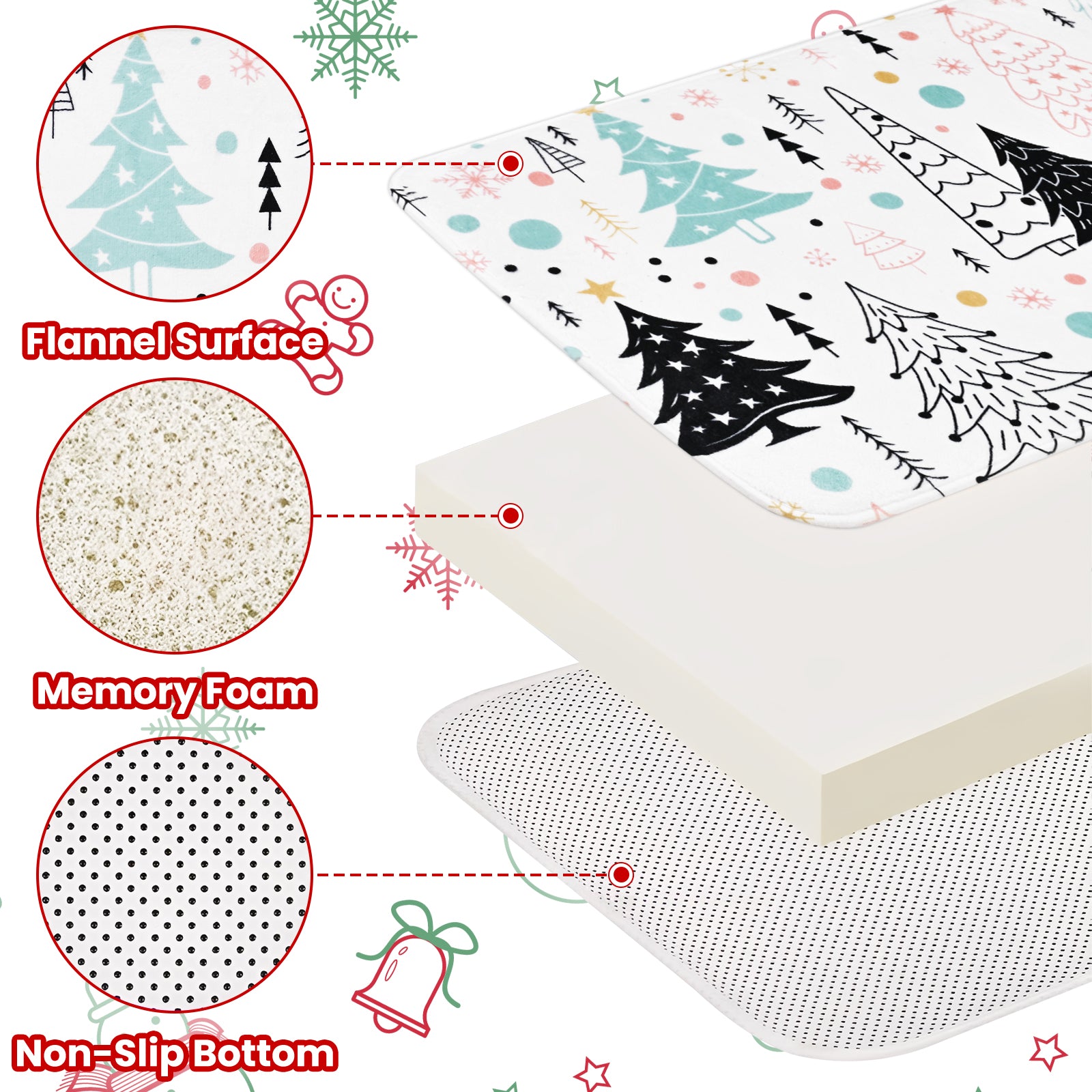 Soft, Absorbent & Non-Slip Rugs: Mats feature a cozy flannel top for comfort, super absorbency, quick drying, and a secure non-slip rubber backing.